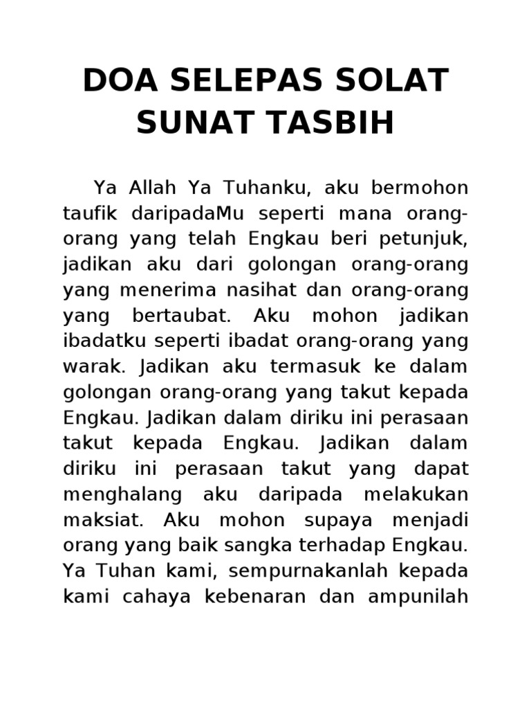 Setiap bacaan akan dipermudahkan dengan ejaan rumi dan terjemahan dalam bahasa melayu. Shalat tasbih yang merupakan salah satu dari macam macam shalat sunnah yang ada memiliki keutamaannya sendiri yaitu untuk terdzikir dan bertasbih hanya untuk allah penguasa seluruh alam. Bagaimana cara mengerjakan solat sunat tasbih. Duduk antara 2 sujud 10 kali tasbih.
