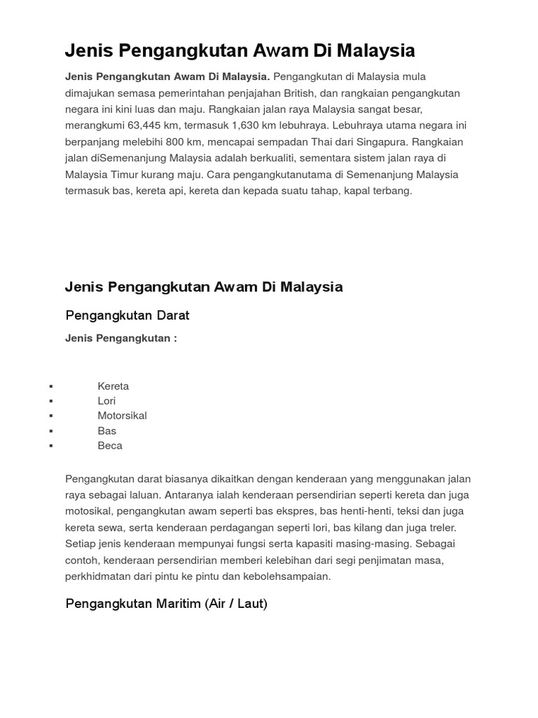 Jenis Pengangkutan Awam Di Malaysia Mobile